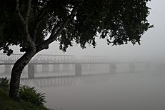 The Walnut Street Bridge on a foggy June morning from the east shore of the Susquehanna.